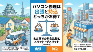 パソコン修理は出張と持込どっちがお得?名古屋での料金比較とメリット・デメリット【…