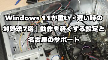 Windows 11が重い・遅い時の対処法7選|動作を軽くする設定と名古屋のサポート【2025年版】 Windows 11にアップグレードしてから、パソコンの動作が重くなった、起動が遅くなったと感じていませんか? この記事では、Windows 11の動作が重い・遅い原因と、初心者から中級者まで段階的に試せる7つの軽量化設定を、所要時間付きで詳しく解説します。 💡 パソコンの重さは「…