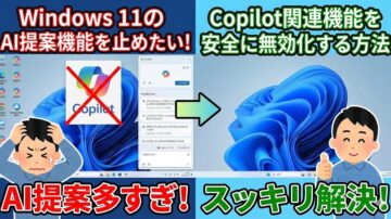 Windows 11のAI提案機能を止めたい!Copilot関連機能を安全に無効化する方法 「Windows 11のCopilotが色々提案してくるけど、プライバシーが心配…」「AIに行動を監視されている気がして不安」 そんな不安を感じているあなたへ。この記事では、Windows 11のCopilot関連機能が何をしているのか、そしてプライバシーを守るための無効化方法を、わかりやすく解説します。 … -