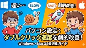 パソコン設定:ダブルクリックの速度を調整し操作性を劇的改善 パソコンを操作する上で、ファイルを開いたり、アプリケーションを起動したりする際に頻繁に使う「ダブルクリック」。この操作がうまくいかず、イライラした経験はありませんか?実は、WindowsやmacOSといったOSでは、マウスやトラックパッドのダブルクリックの速度を調整することが可能です。「早くクリックしすぎても反応しない」「ゆっくりだとシン…
