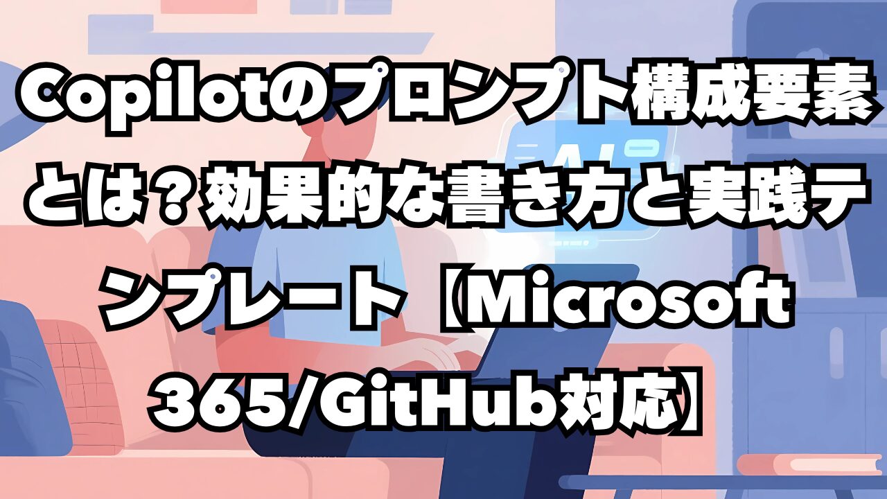 Copilot(Microsoft 365 CopilotおよびGitHub Copilot)で効果的な結果を得るためのプロンプト構成要素を徹底解説。Microsoftが推奨する4要素、GitHub Copilotの詳細要素、実践的なテンプレート、よくある失敗例まで完全網羅します。