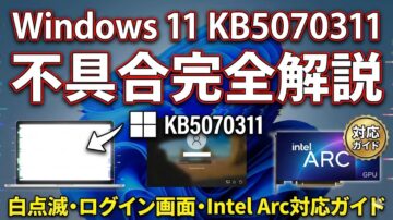 Windows 11 KB5070311の不具合を完全解説|白点滅・ログイン画面・Intel Arc対応ガイド 2025年12月1日、Windows 11向けに新しいプレビューパッチ「KB5070311」が配信されました。しかし、この更新プログラムを適用した後、多くのユーザーから「画面が一瞬白く点滅する」「ログイン画面がおかしい」「ゲームが動かない」といったトラブルが報告されています。 特にInt… -