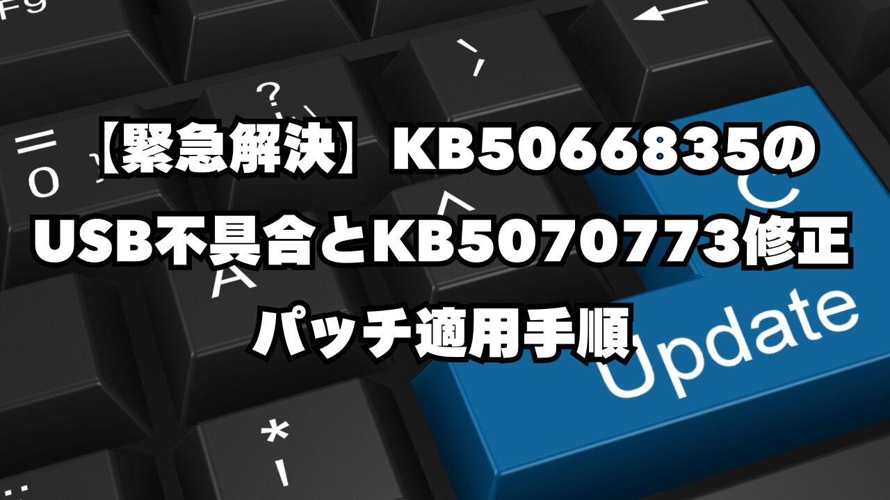 【緊急解決】KB5066835のUSB不具合とKB5070773修正パッチ適用手順