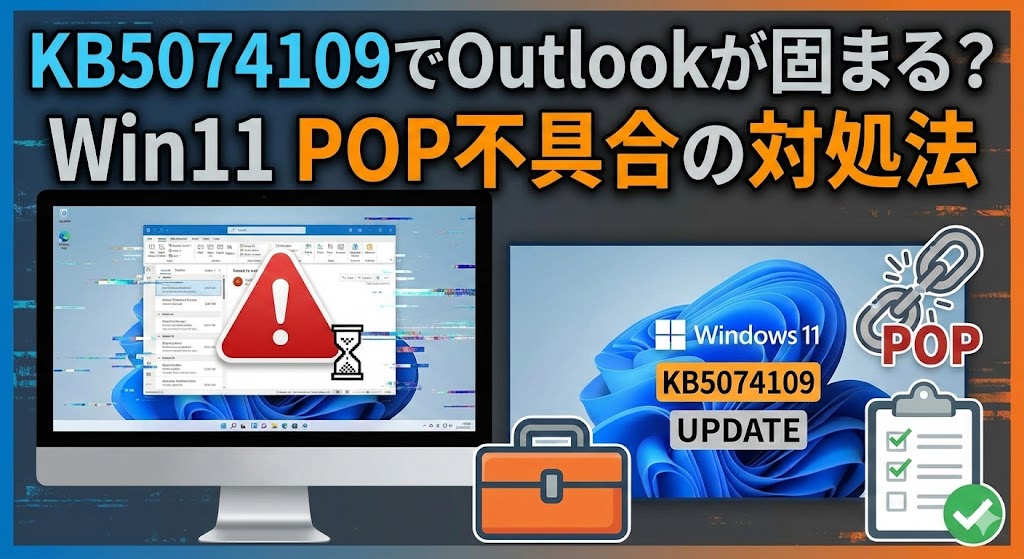 この記事では、Windows 11のKB5074109更新プログラム適用後に発生しているOutlook(POP)の不具合について解説しました。