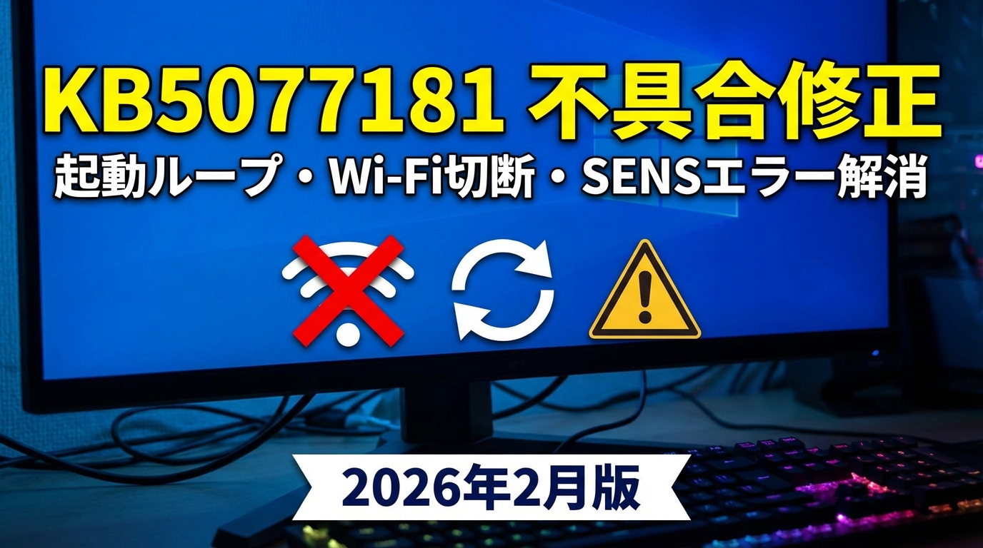 KB5077181不具合の対処法:ブートループ・Wi-Fi消失・SENSエラーを解決する手順(2026年2月版)