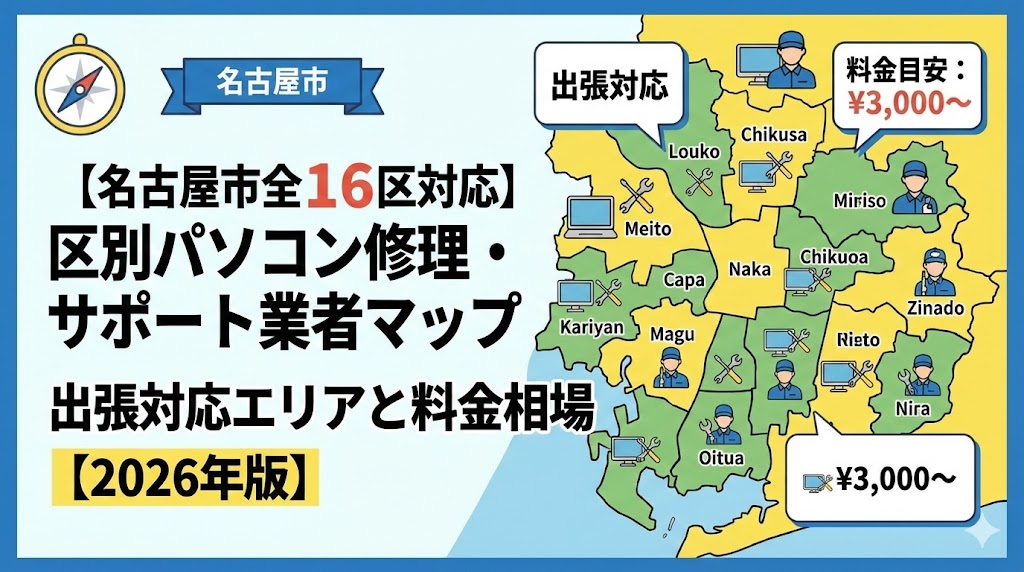 【名古屋市全16区対応】区別パソコン修理・サポート業者マップ|出張対応エリアと料金相場【2026年版】
