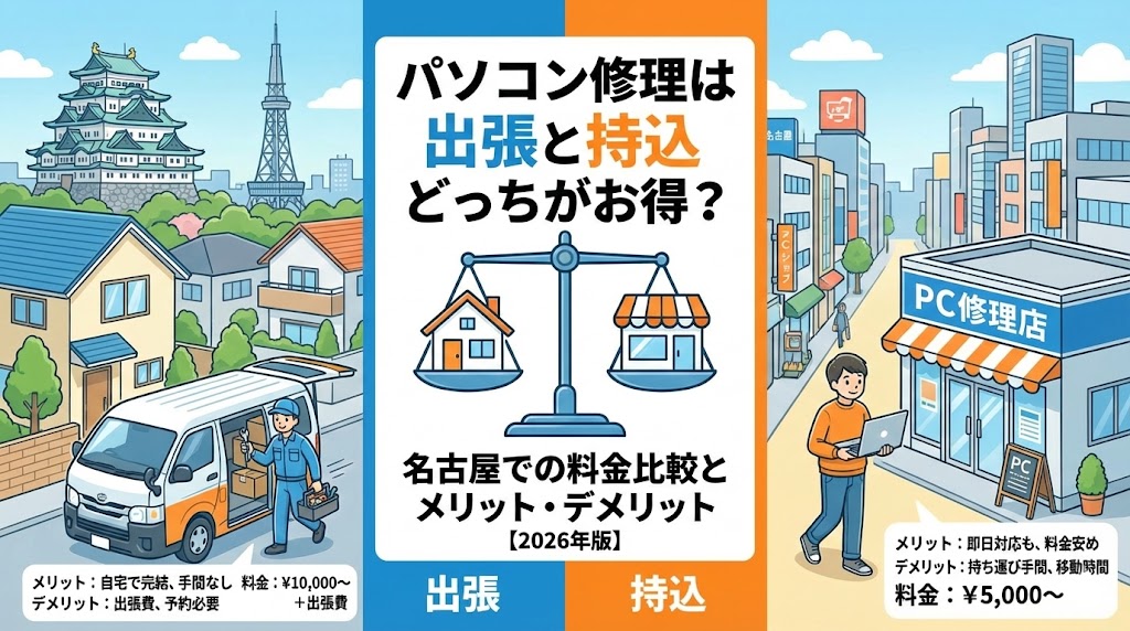 パソコン修理は出張と持込どっちがお得?名古屋での料金比較とメリット・デメリット【2026年版】