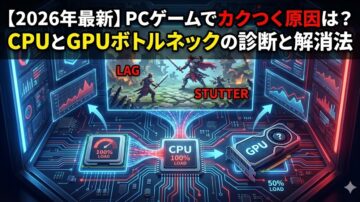 PCボトルネック完全診断ガイド|CPU/GPU負荷、熱、安定性の総合監視指標を解説 最終確認日:2026年1月18日 最近グラフィックボード(GPU)を換装したのに、ゲームのフレームレートが期待通りに伸びない...。ただし原因は、必ずしもハードウェア性能差(ボトルネック)とは限りません。まずは上限FPS・V-Sync・フレームリミッター(RTSS等)といった「設定起因」で頭打ちになっていないかを疑…
