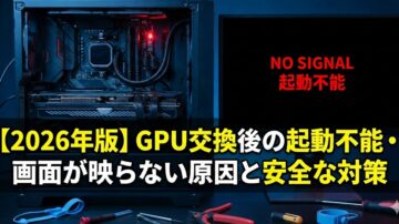 グラボ交換後にPCが起動しない、不安定になる原因は?ハードウェアアップグレードの課題と解決策 PCハードウェア、特にグラフィックボード(GPU)のアップグレードとメンテナンスにおける主要な課題は、ハードウェア間の物理的・電気的な互換性の問題、ソフトウェア(ドライバー)の競合、および熱管理によるパフォーマンスの不安定さに関連しています。 ※本記事は2026年1月時点で調査した内容です。 規格・ドライ…