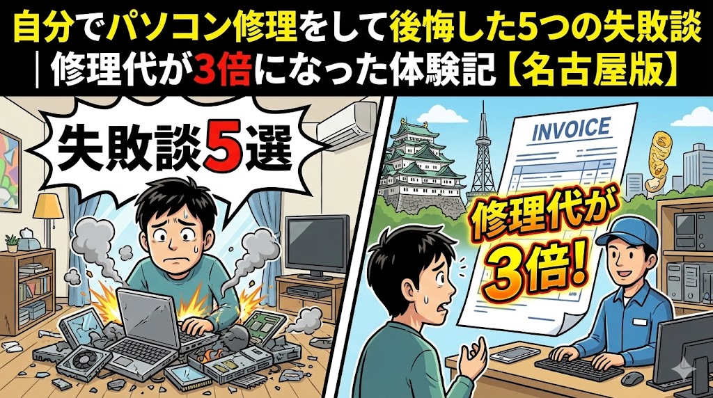 自分でパソコン修理をして後悔した5つの失敗談|修理代が3倍になった体験記【名古屋版】