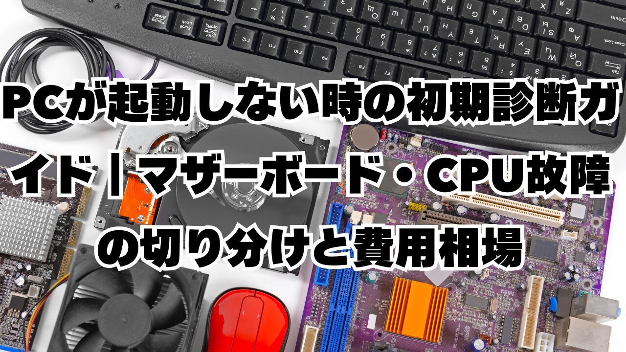 これらの基本的な問題の切り分けについては、パソコンが起動しない時の原因と対処法|画面が真っ暗・異音・電源ランプ点滅で詳しく解説していますが、本記事では特に深刻なマザーボード・CPU故障の診断に焦点を当てて解説します。