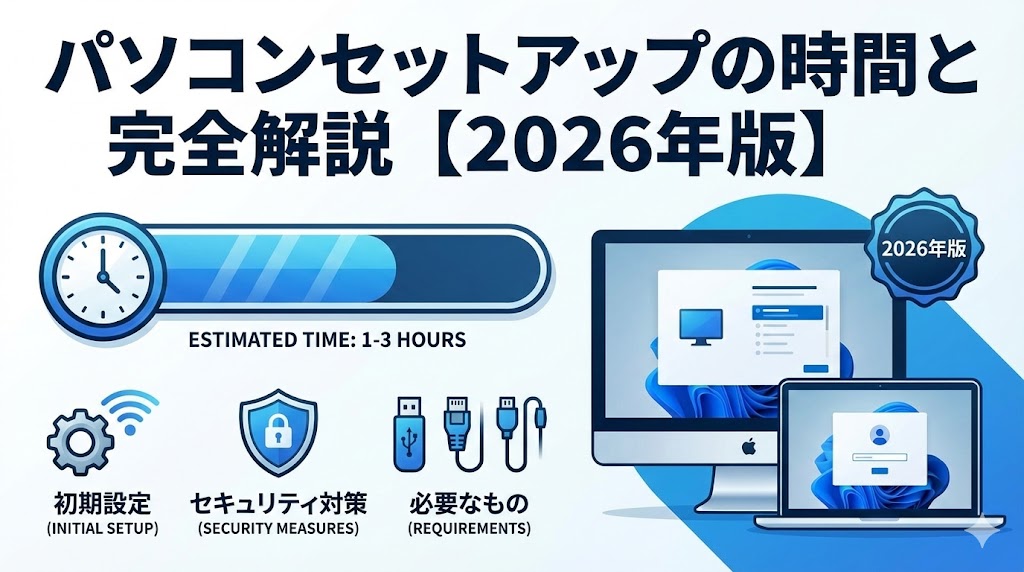 この記事では、パソコンセットアップの時間はどれくらいかかるのか、その全体像を明確にし、各ステップ(初期設定・セキュリティ対策・必要なものを解説)で何を行うべきか、そしてそれぞれの作業にかかる時間の目安を詳しく解説します。
