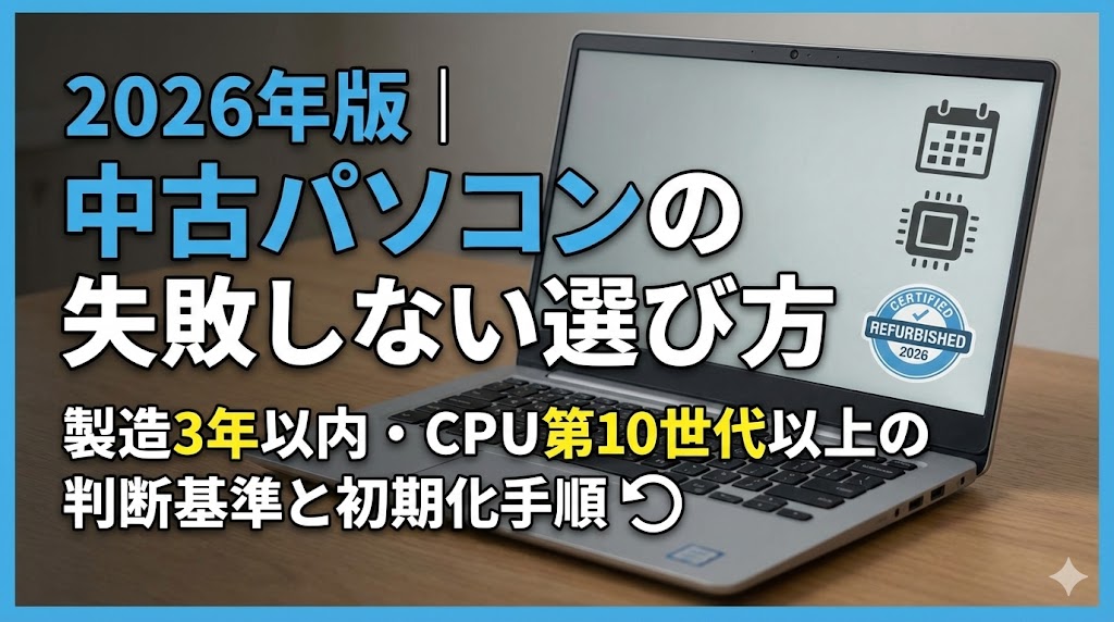 2026年版|中古パソコンの失敗しない選び方|製造3年以内・CPU第10世代以上の判断基準と初期化手順