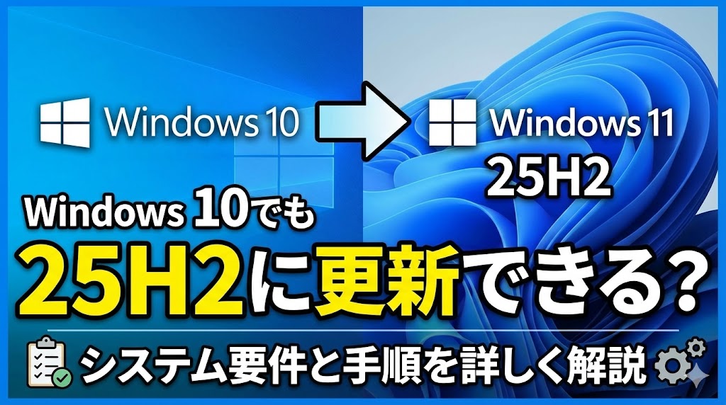 MicrosoftのWindows 11 2025 Update(バージョン25H2)は2025年9月30日から順次提供されています。このニュースを聞いて、「Windows 10からでも11に更新できるの?」と疑問に思われた方も多いと思います。