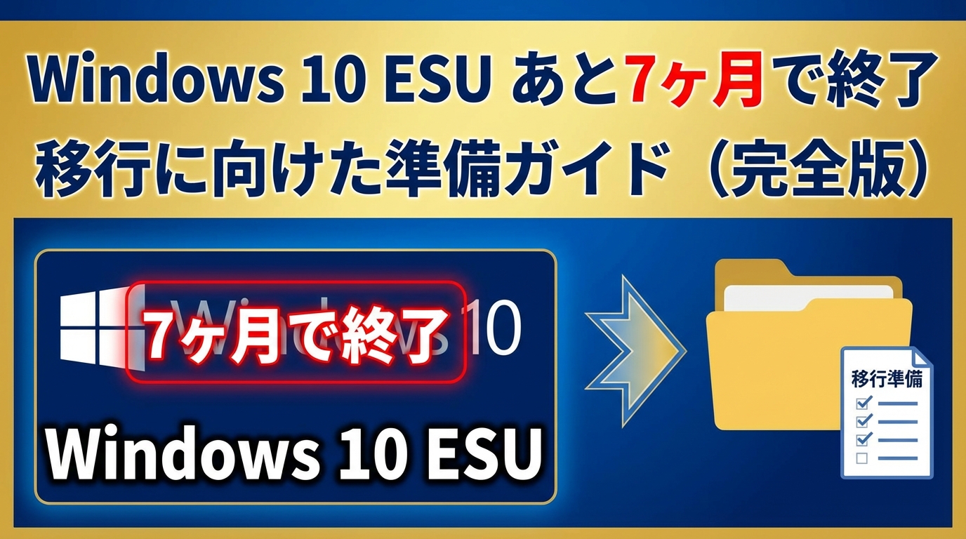本記事では、Windows 10 ESU終了まで残り7ヶ月で進める移行準備を、確認・バックアップ・移行の順にわかりやすく解説します。(専門知識は不要です!)