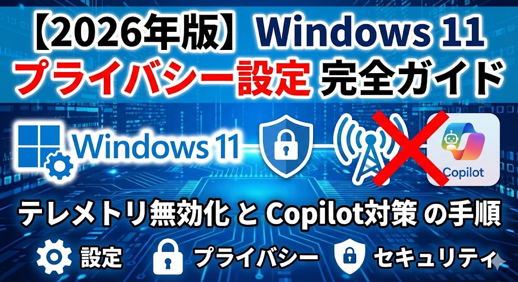 【2026年版】Windows 11プライバシー設定完全ガイド|テレメトリ無効化とCopilot対策の手順