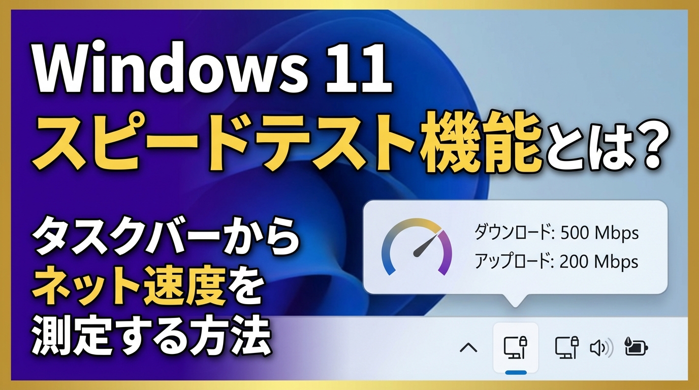 Windows 11で、タスクバーやクイック設定からインターネット速度テストに直接アクセスできる新しい導線が追加されました。回線が遅い、オンライン会議が不安定、Wi-Fiの調子が悪いと感じたときに、検索し直さずすぐ測定できるのが大きな特徴です。