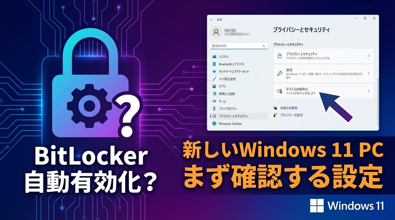 この記事では、Windows 11 24H2以降の新PCでBitLockerやデバイスの暗号化が有効になっている理由と、最初に確認すべき設定を解説しました。